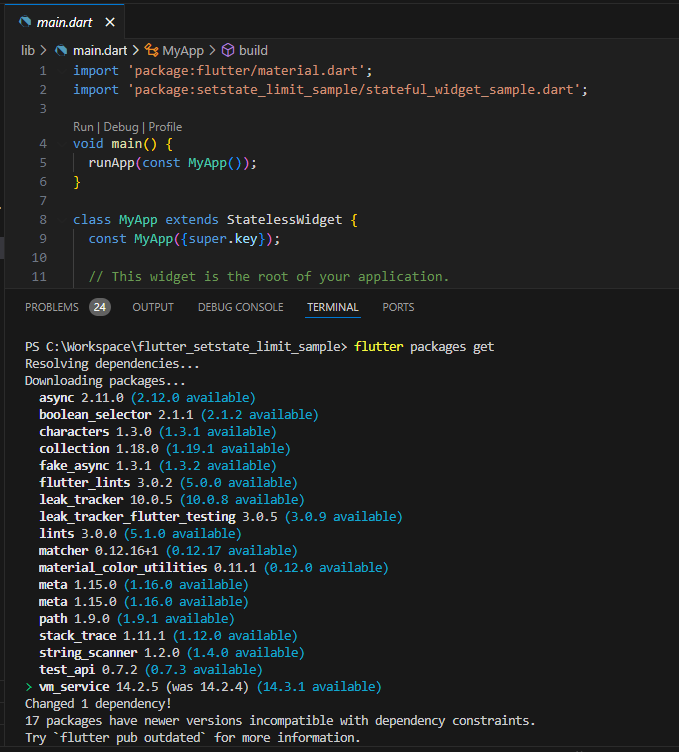 플러터 프로젝트 따왔는데 무슨 meterial 파일이 없다고 빨간줄을 뱉어낸다.